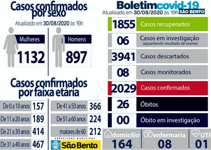 No portal da Prefeitura Municipal de São Bento (PB), consta a atualização do Boletim Epidemiológico do domingo (30Agosto2020), registrando-se 26 óbitos.