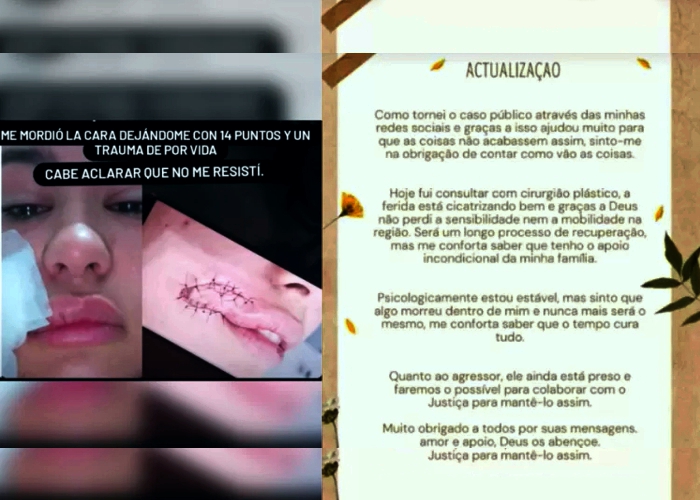“Hoje [sexta-feira] fui me consultar com um cirurgião plástico. A ferida está cicatrizando bem e, graças a Deus, não perdi a sensibilidade nem a mobilidade na região. Será um longo processo de recuperação, mas me conforta saber que tenho o apoio incondicional da minha família”.