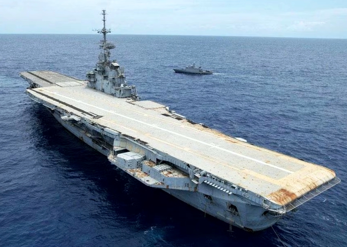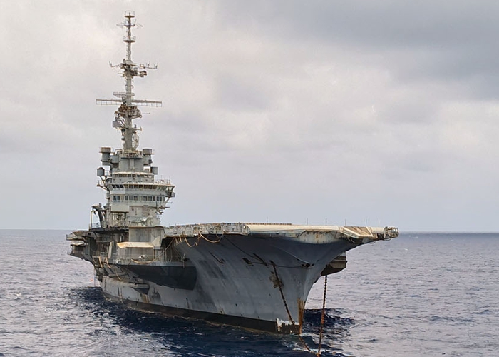 O porta-aviões foi afundado na última sexta-feira (03Fevereiro2023), em águas jurisdicionais brasileiras, a 350 quilômetros da costa brasileira, em um local onde a profundidade chega a 5 mil metros.