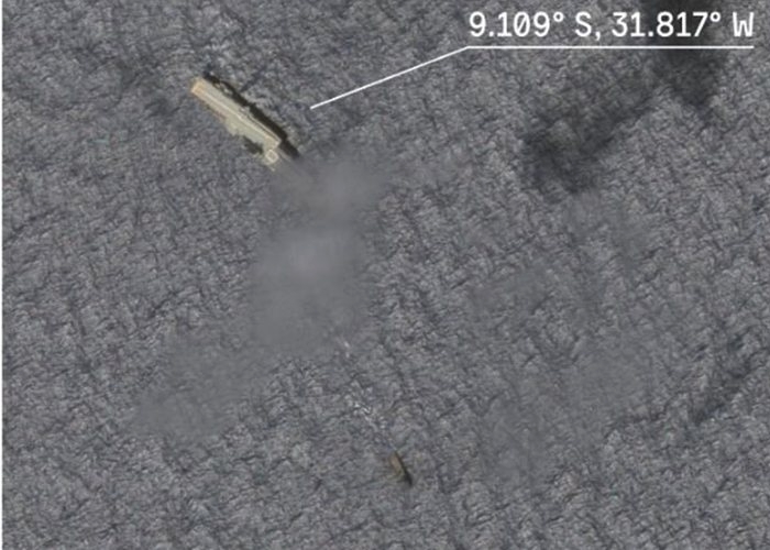 O Greenpeace Brasil divulgou uma foto de satélite que mostra o ex-porta-aviões da Marinha navegando em mar aberto e condenou o afundamento da embarcação, devido ao impacto ambiental.