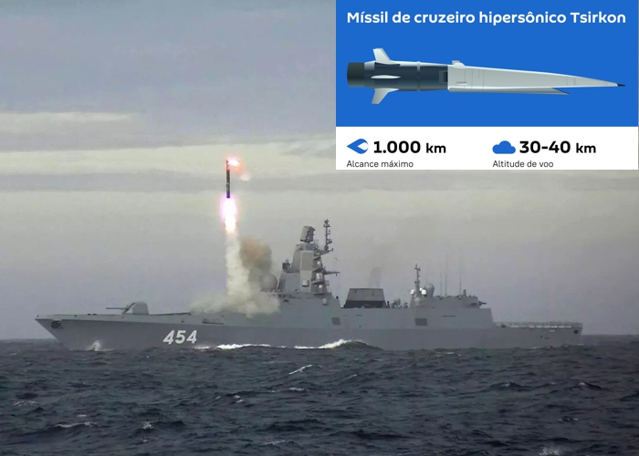 Testes com míssil russo hipersônico de cruzeiro Tsirkon começaram em outubro de 2020. Tem um alcance máximo de cerca de mil quilômetros. Segundo especialistas militares russos, o míssil pode levar 300 kg de explosivos ou uma bomba atômica de 200 kt (pouco mais de dez vezes mais potente que a de Hiroshima).