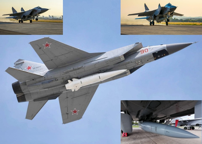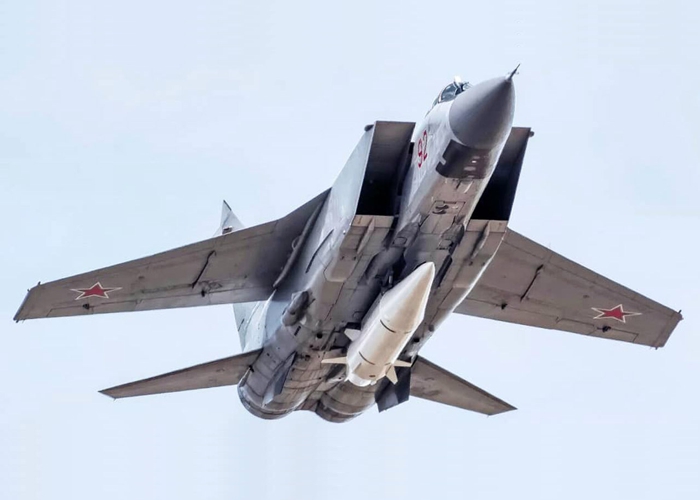 O míssil hipersônico Kinzhal que significa “adaga”, pode ser bem mais letal. A arma apresenta configurações ainda mais potentes do que outros mísseis hipersônicos, sendo capaz de alcançar uma velocidade de até 12.350 km/h, com alcance de 2.000 km. O Kinzhal tem 8 metros de comprimento e pode transportar uma ogiva nuclear, sendo transportado em caças russos do tipo MiG-31K.