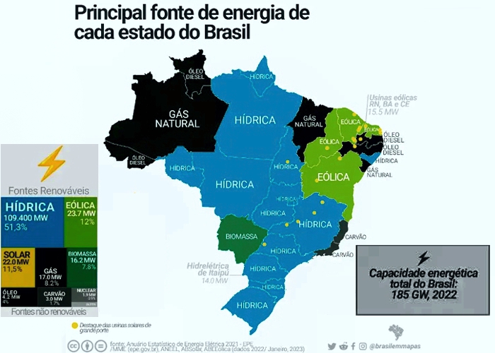 Doze estados possuem a hidráulica como sua principal fonte de energia, incluído o D.F e a maior cidade do país – São Paulo.
