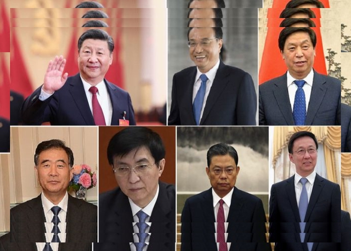 O Comitê Permanente do Politburo da China, o principal órgão de decisão da nação, tem na liderança, além de Xi Jinping. Na foto, em sentido horário, Xi Jinping, Li Keqiang, Li Zhanshu, Wang Yang, Wang Huning, Zhao Leji e Han Zheng, integrantes do Comitê Permanente do Politburo do Partido Comunista da China.