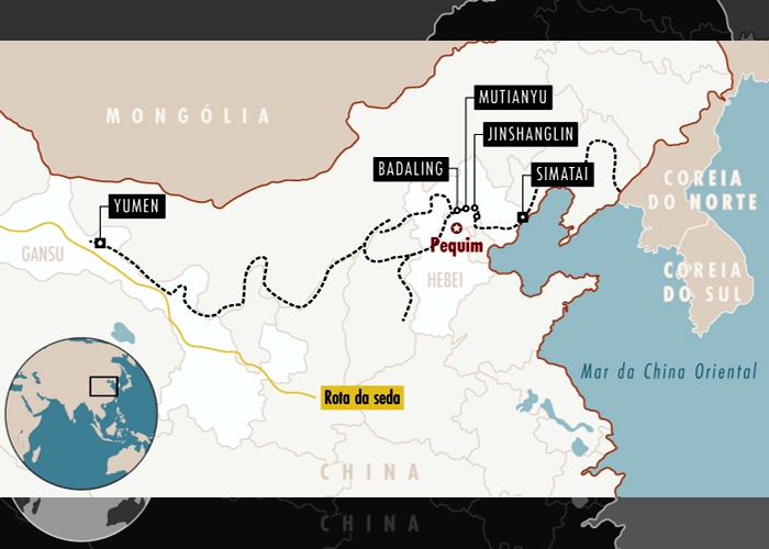 Entre Pequim e Gansu, a muralha se faz presente ao longo do território chinês, deixando marcas claras do tempo. Ao todo são 404 cidades e condados, 15 províncias, afirma o cientista da computação Han Guowei, 59, do The Great Wall Society, associação fundada pelo ex-líder comunista Deng Xiaoping, em 1987.