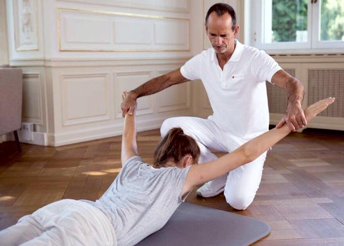 Portanto, a fisioterapia oferece múltiplas alternativas. Muitos exercícios visam melhorar a mobilidade da coluna e alongar os músculos (por exemplo, os músculos extensores da coluna, os isquiotibiais e os iliopsoas).