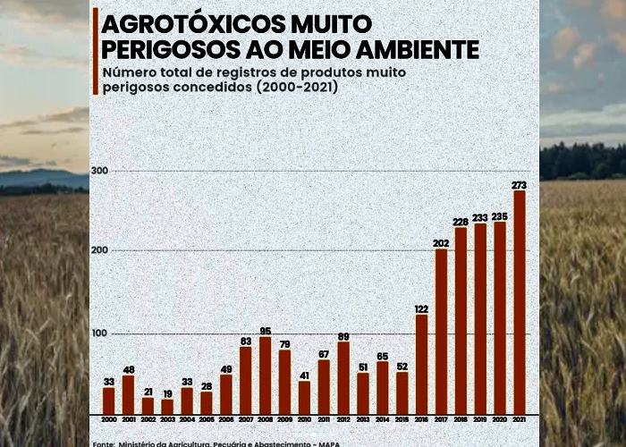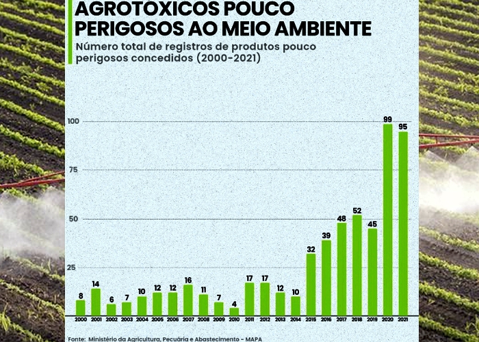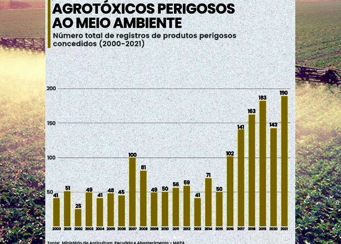 O Brasil é um dos maiores consumidor de agrotóxicos do mundo, isso não é surpresa tendo em vista que também é um dos maiores produtores agrícolas do globo, o surpreendente é sim a escala com que novos agrotóxicos entram no país, desde 2016 se pode observar um aumento nítido nos números totais, assim como nos números de agrotóxicos que são de alguns forma prejudiciais ao meio ambiente.