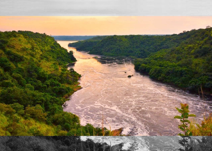 O rio Nilo começa no distrito de Jinja, localizado em Uganda, fluindo pela Etiópia e para o Sudão.