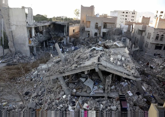 Danos causados pelo ataque-resposta dos Emirados Árabes Unidos e a Arábia Saudita na capital iemenita de Sanaa. País vem sendo assolado por conflitos internos, com interferência de países vizinhos.