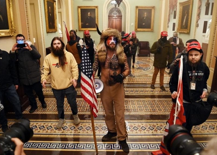 Dentre os principais invasores estavam militantes da supremacia branca. Um dos invasores que mais chamou a atenção foi o membro do QAnon, Jake Angeli (autodenominado QAnon Shaman e cujo nome real é Jacob Anthony Chansley), que invadiu o Capitólio com o rosto pintado, uma bandeira dos Estados Unidos e chapéu de pele com chifres.