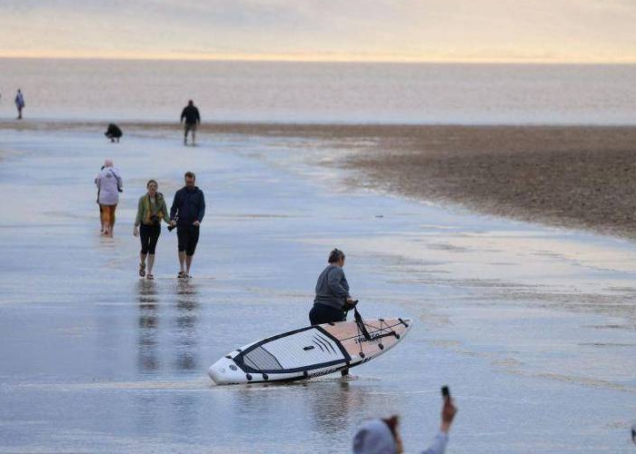 Os turistas não perderam tempo e estão aproveitando ao máximo o evento extraordinário. Além da canoagem, os visitantes montaram cadeiras de praia e crianças em trajes de banho mergulharam no novo lago.