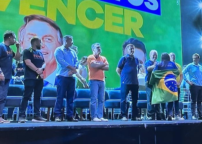 No local, foram instalados painéis com a foto dos dois e, durante o evento, a militância conservadora entoaram o slogan ‘Quero-quero’, fazendo referência a chapa que esperavam que fosse anunciada por Bolsonaro, como havia sido prometido por Queiroga no dia da oficialização da aliança PL-Novo.