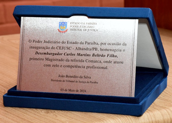 Ainda durante a solenidade, o corregedor-geral de Justiça, desembargador Carlos Martins Beltrão Filho, foi homenageado pelo Tribunal de Justiça com a entrega de uma placa, alusiva ao magistrado ter sido o primeiro juiz da Comarca, na década de 1980.