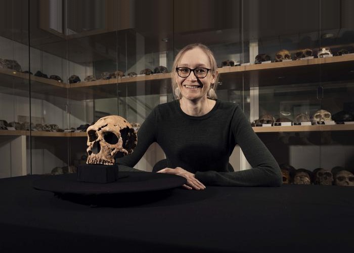 Com cristas supraorbitais pronunciadas e sem queixos, os crânios dos neandertais parecem diferentes dos de nossa própria espécie, Homo sapiens, disse Emma Pomeroy (Foto acima), uma paleoantropóloga e professora associada do departamento de arqueologia da Universidade de Cambridge, que descobriu o esqueleto e aparece no novo filme.