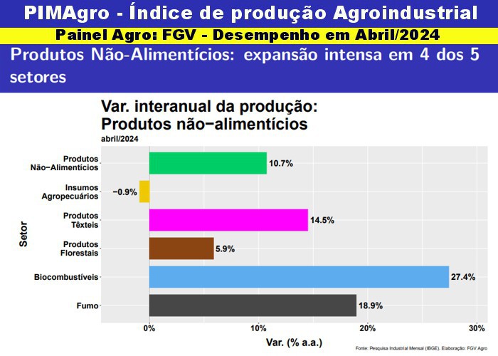 Tags: Agroindústria, Agroindústria brasileira, alta da Agroindústria, FGVAgro, Índice de Produção Agroindustrial, Insumos Agropecuários, pesquisa sobre agroindústria, PIMAgro, produção agroindustrial, Produtos Alimentícios e Bebidas, Produtos Não-Alimentícios